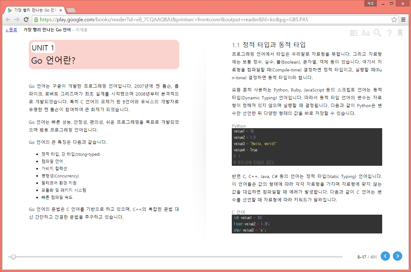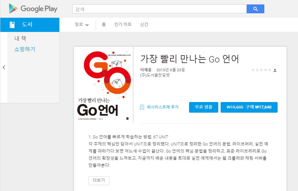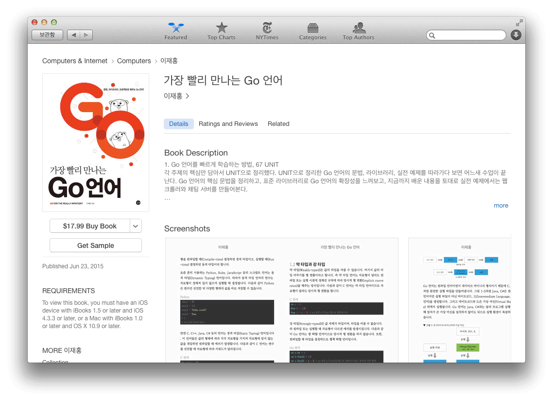 iBooks 스토어에서 "가장 빨리 만나는 Go 언어" 검색