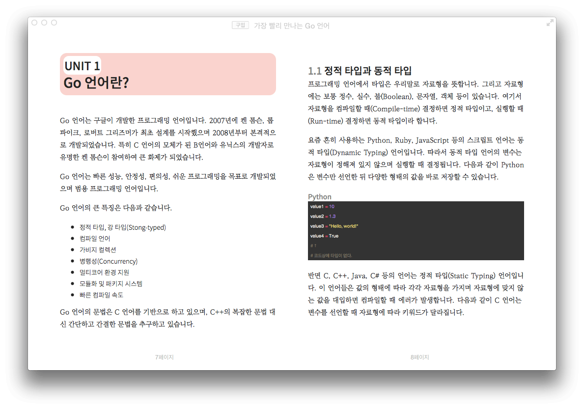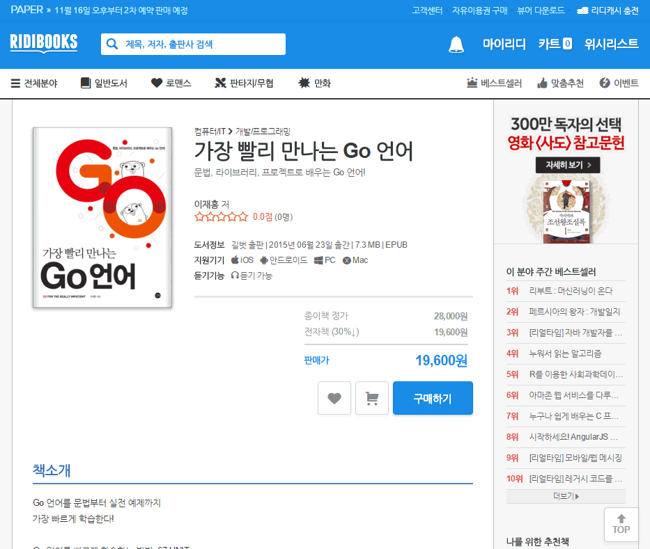 드디어 "가장 빨리 만나는 Go 언어: 문법, 라이브러리, 프로젝트로 배우는 Go 언어!" 전자책이 출간되었습니다.