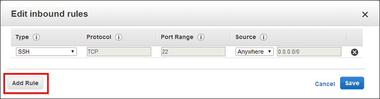 Inbound 규칙을 설정하는 창이 표시됩니다. 아래 Add Rule 버튼을 클릭합니다.