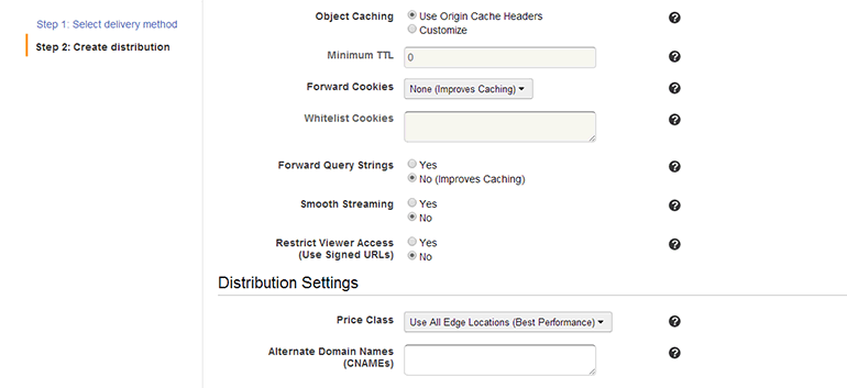 - Use All Edge Locations: 모든 에지 로케이션을 사용합니다. 위의 두 옵션보다는 요금이 많이 나옵니다.