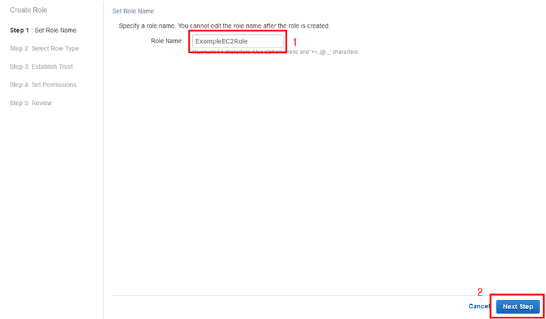 - Role Name: IAM 역할 이름입니다. ExampleEC2Role을 입력합니다.