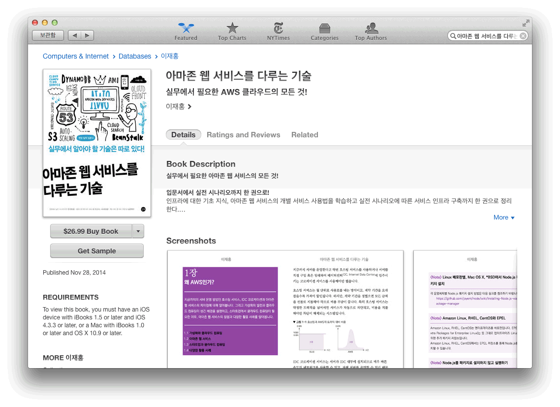 iBooks 스토어에서 "아마존 웹 서비스를 다루는 기술" 검색