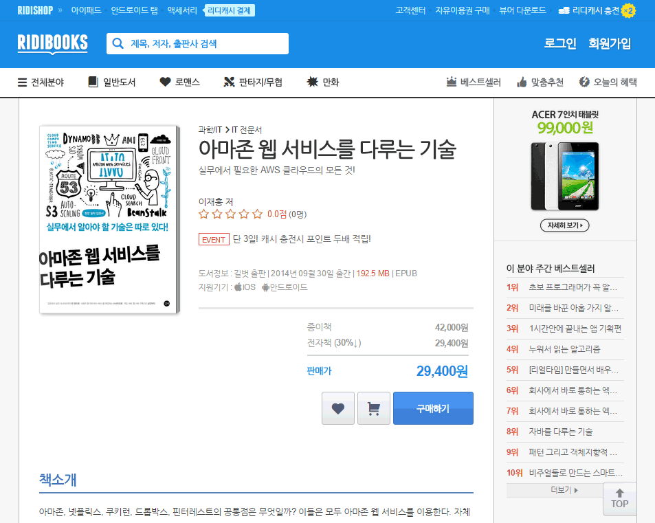 드디어 "아마존 웹 서비스를 다루는 기술: 실무에서 필요한 AWS 클라우드의 모든 것!" 전자책이 출간되었습니다.